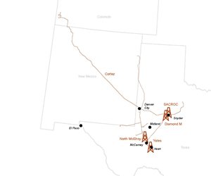 We transport approximately 800 million cubic feet per day of CO2 to eastern New Mexico, West Texas and southwestern Utah. The primary market for transportation on our CO2 pipelines is to customers, including ourselves, using CO2 for enhanced oil recovery (EOR) in mature oil fields. The Cortez Pipeline is our largest CO2 pipeline, stretching 500 miles from southwestern Colorado to Denver city, Texas, and capable of transporting 1.5 billion cubic feet per day. In addition to CO2 pipelines, we own the Kinder Morgan Wink Pipeline system. The Wink Pipeline is a 450-mile Texas intrastate crude oil pipeline system that allows us to better manage crude oil deliveries from our oil field interests in West Texas. It runs from our SACROC unit in Scurry County, Texas and McCamey, Texas, to a terminal in Wink, Texas and a refinery in El Paso, Texas.